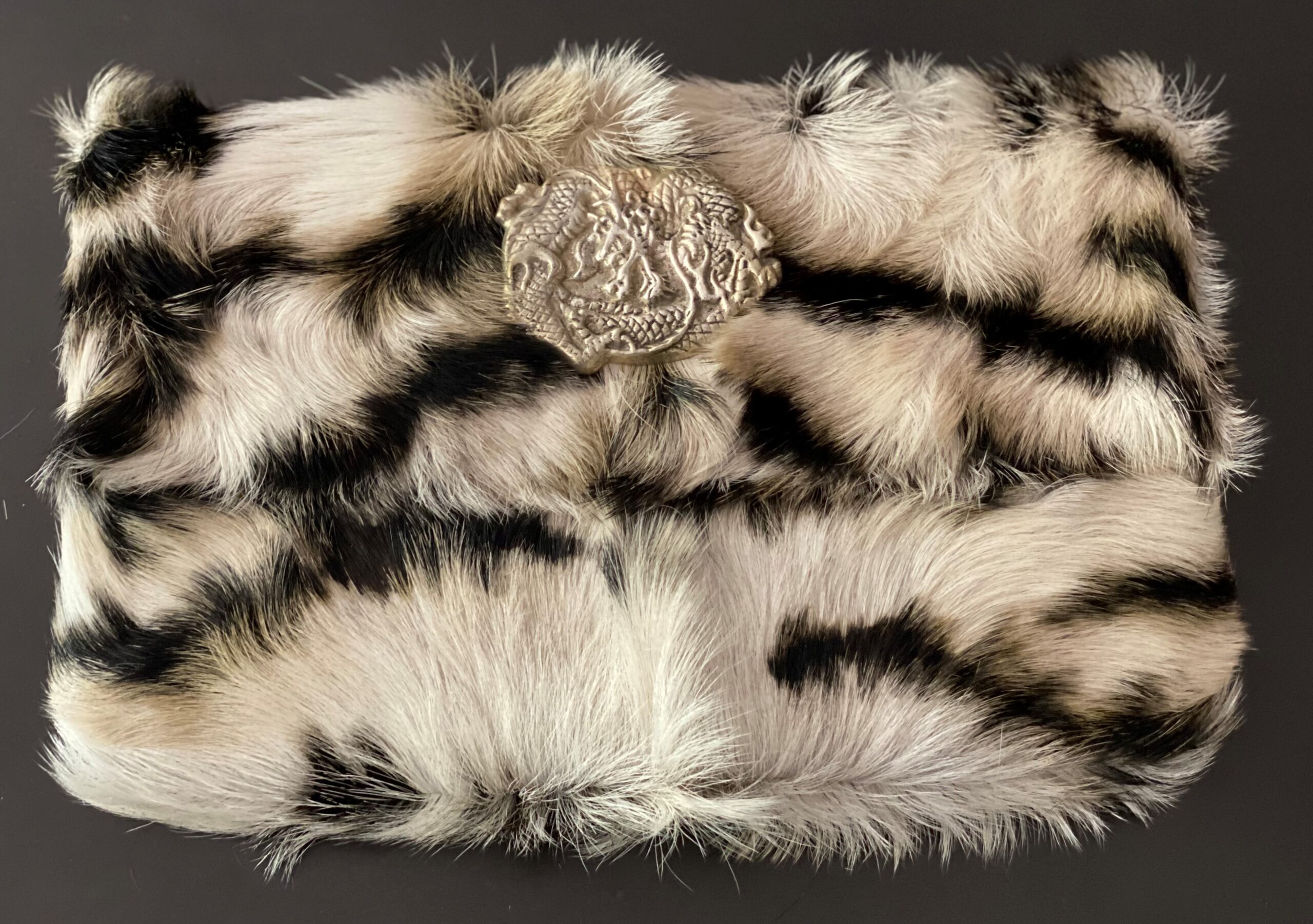 Eden will be the envy of all your friends. Handcrafted from goat hide and finished with animal print, she folds over with 6 hidden magnets to hold her into place.  Featuring a dragon motif on the front, suede lining with 2 internal pockets.  Space for you to carry your essentials, lippy, phone, wallet.  This stunning piece is a must have to compliment any outfit, a night out won’t be complete without it.  Each hide is handpicked and forever unique!