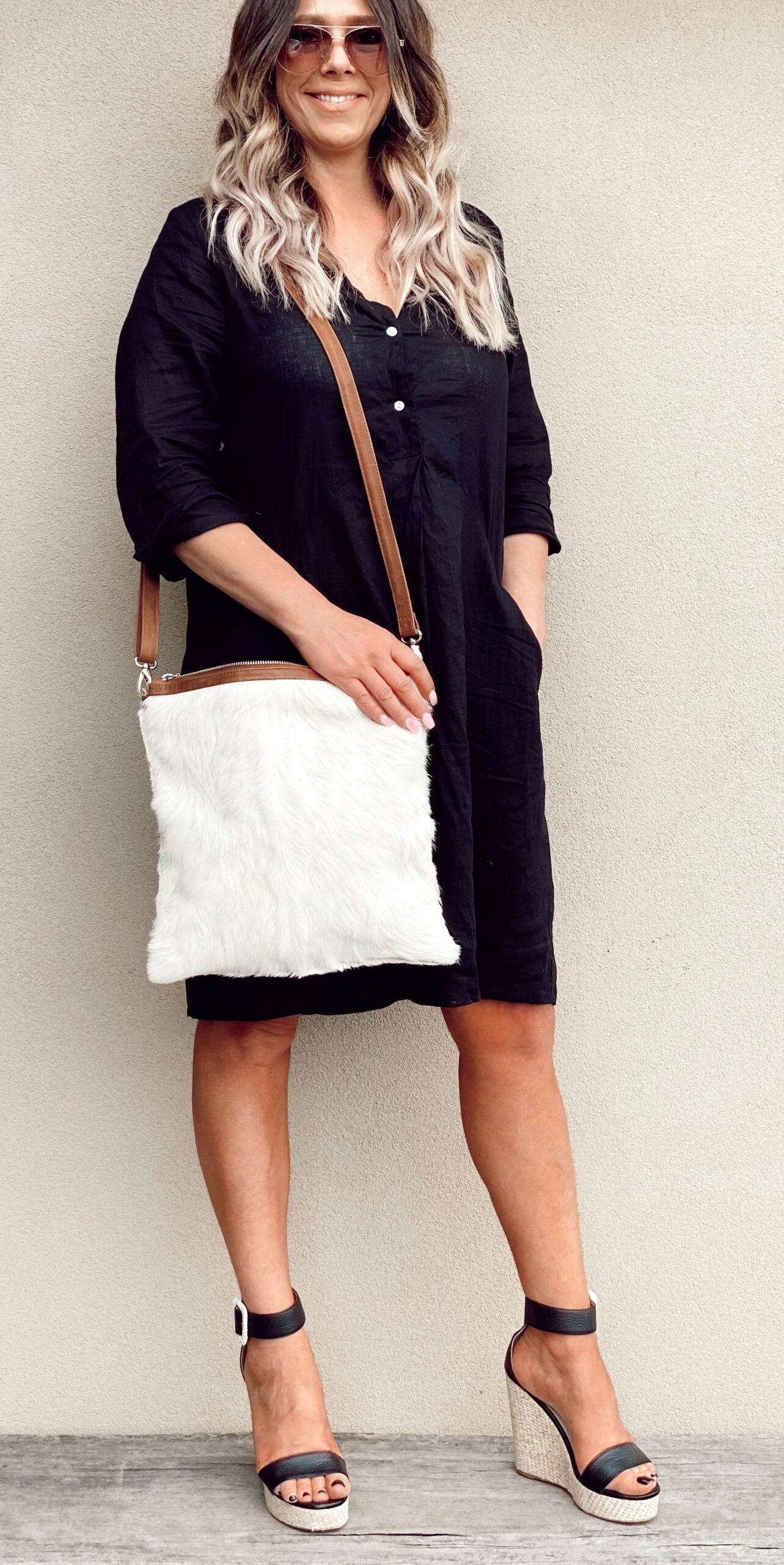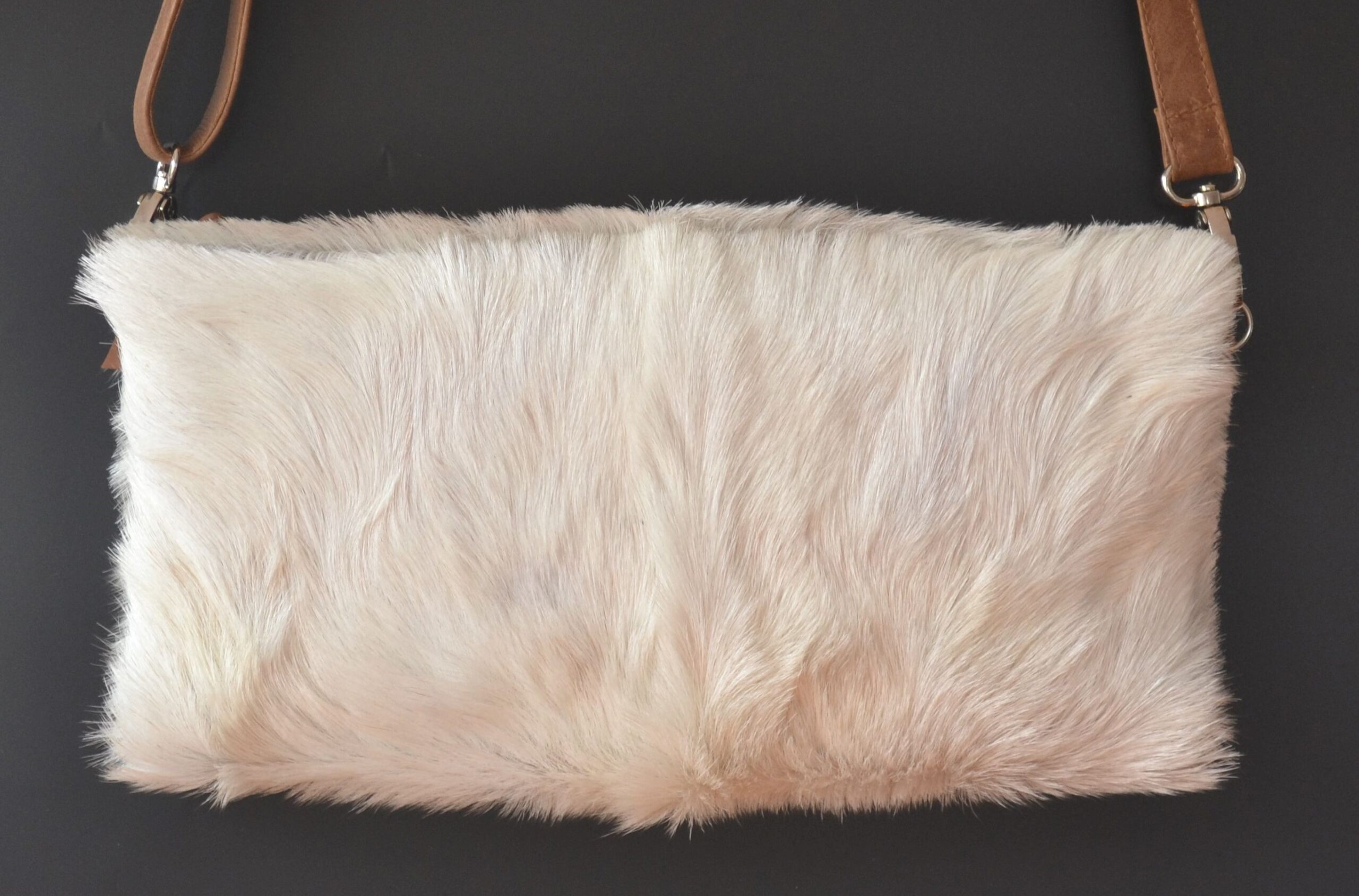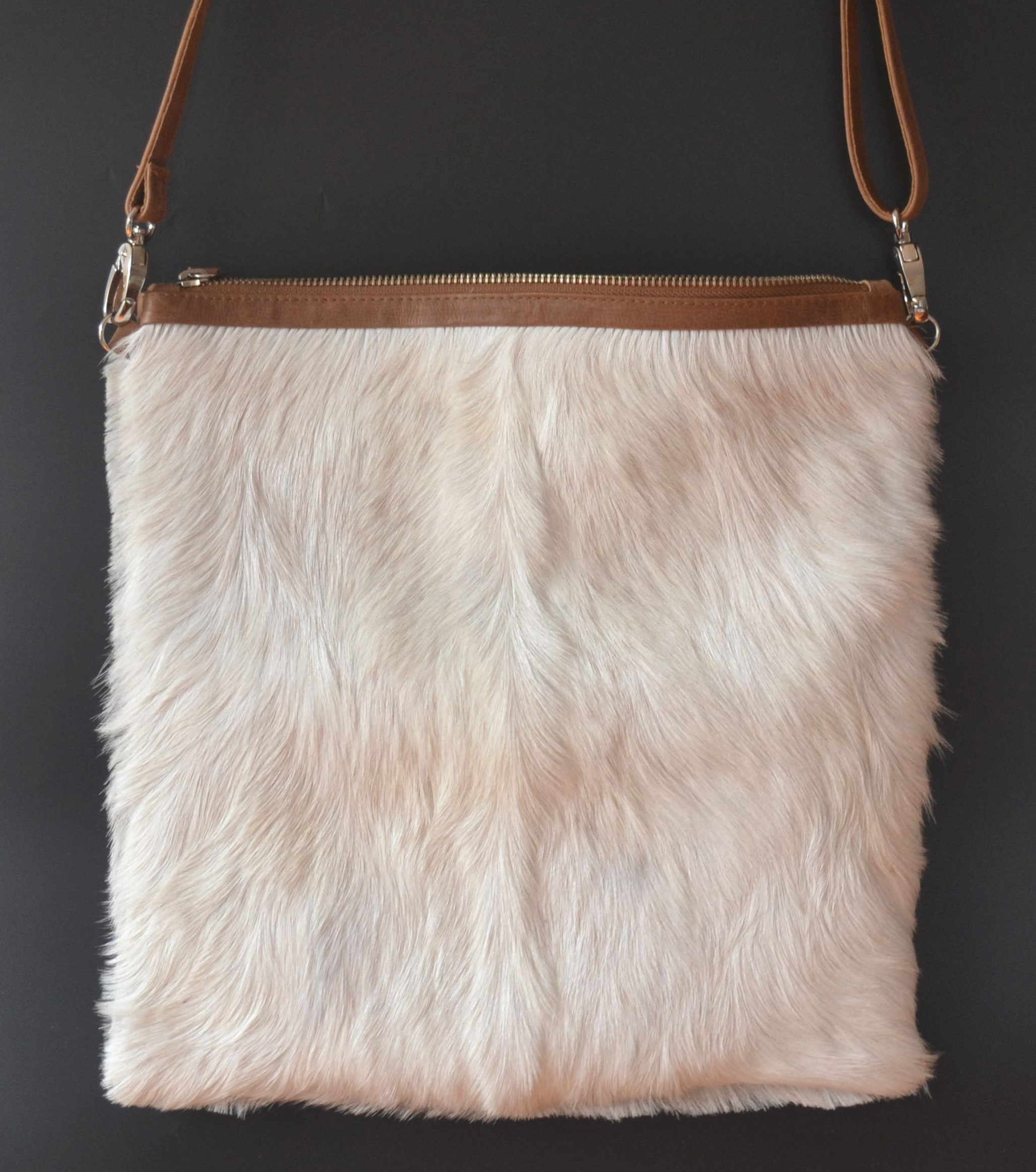 The Byron is super chic elegance carrying you from day into evening. Goat Hide Leather on both sides of bag with detachable adjustable strap with 4 D-rings; so the Byron can be used as a clutch (4 strong invisible magnets hold it in place) by simply detaching the strap or opened as a bag for more space hence showing the full motif of the hide hair piece. This 3 in one bag can be worn cross body, over shoulder or under arm as a clutch. Each hide is handpicked and one of a kind, forever unique!