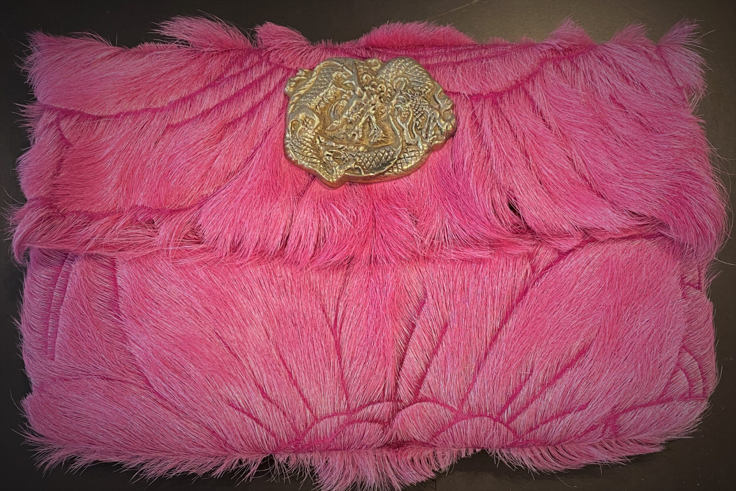 Eden will be the envy of all your friends. Handcrafted from goat hide, colour dyed, and hand carved by skilled artisans.  She folds over with 6 hidden magnets to hold her into place.  Featuring a dragon motif on the front, suede lining with 2 internal slip pockets.  Space for you to carry your essentials, lippy, phone, wallet.  This stunning piece is a must have to compliment any outfit, a night out won’t be complete without it.  Each hide is handpicked and forever unique!