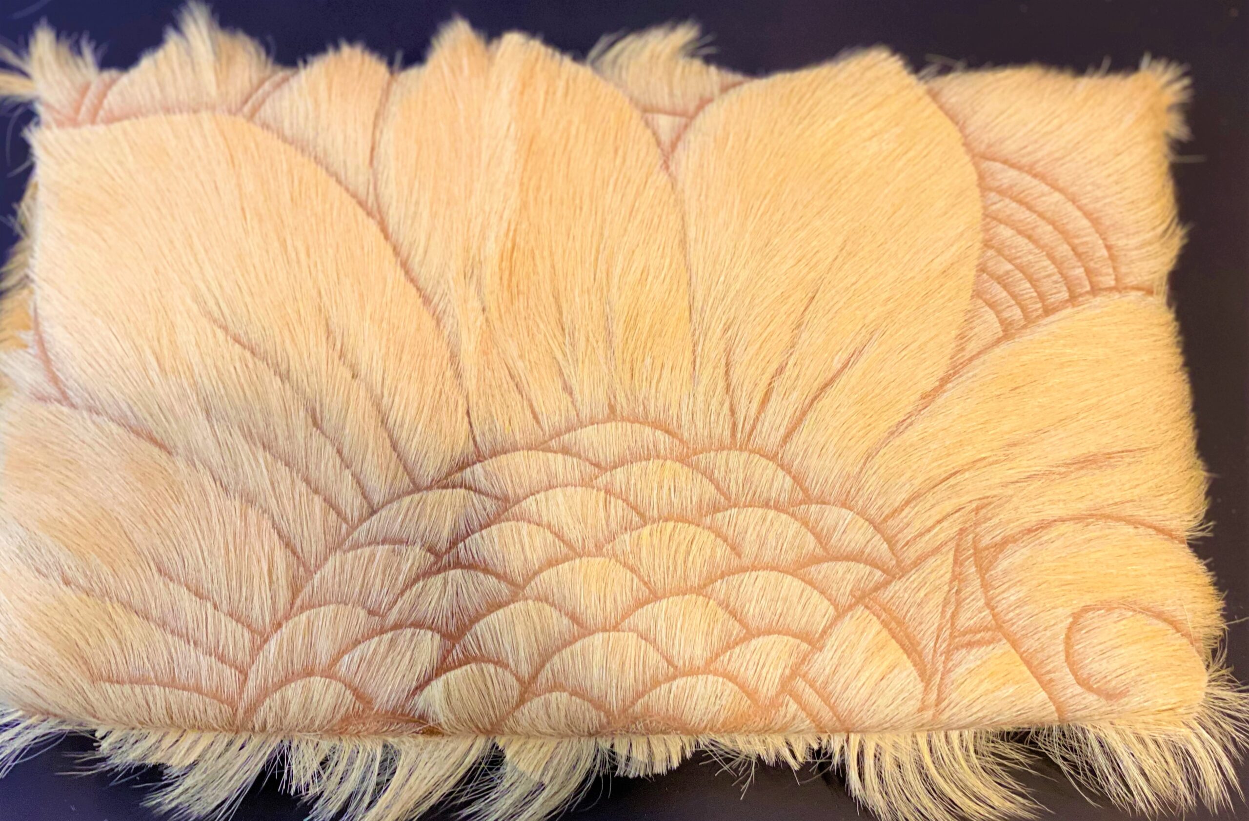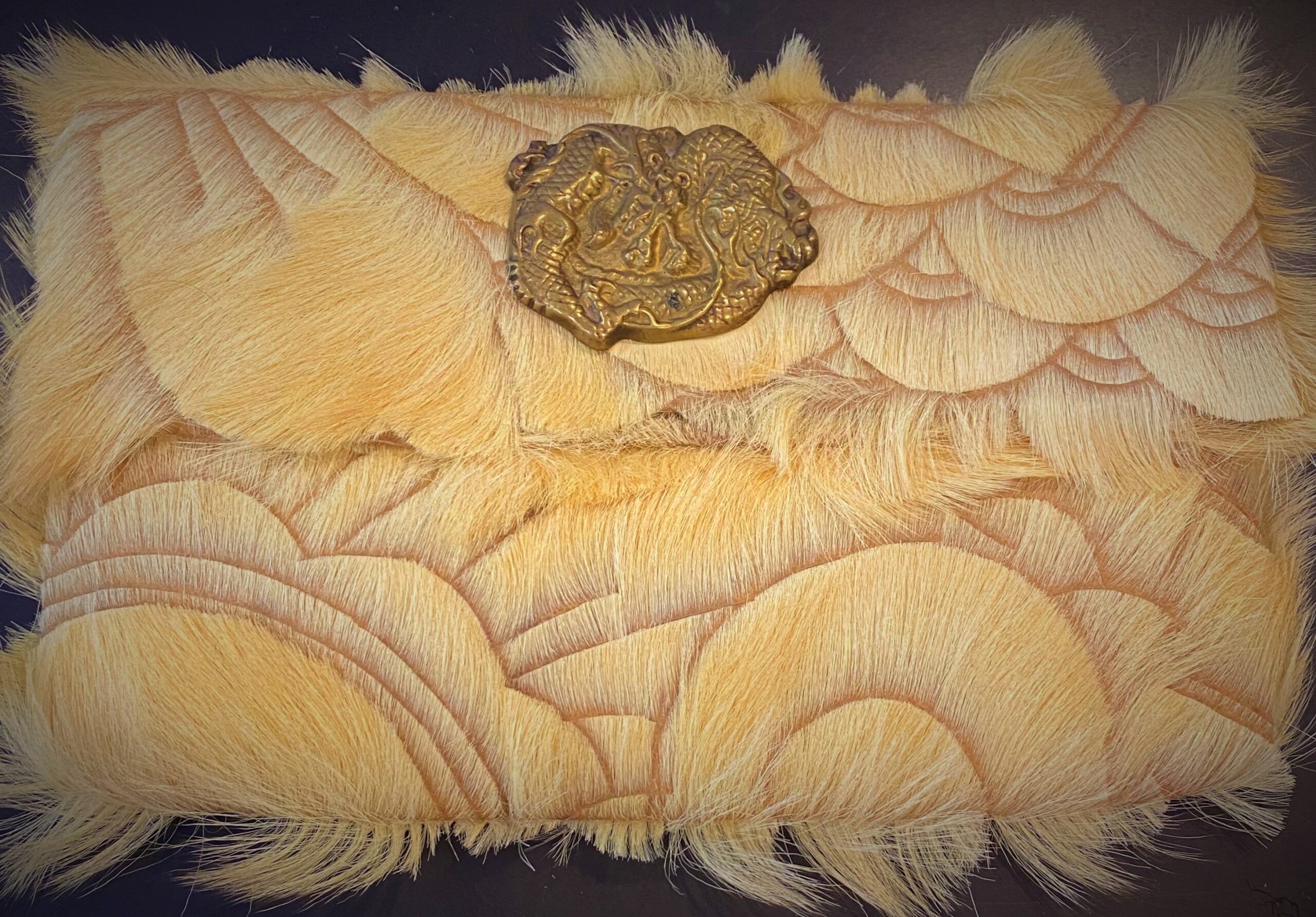 Eden will be the envy of all your friends. Handcrafted from goat hide, colour dyed, and hand carved by skilled artisans.  She folds over with 6 hidden magnets to hold her into place.  Featuring a dragon motif on the front, suede lining with 2 internal slip pockets.  Space for you to carry your essentials, lippy, phone, wallet.  This stunning piece is a must have to compliment any outfit, a night out won’t be complete without it.  Each hide is handpicked and forever unique!