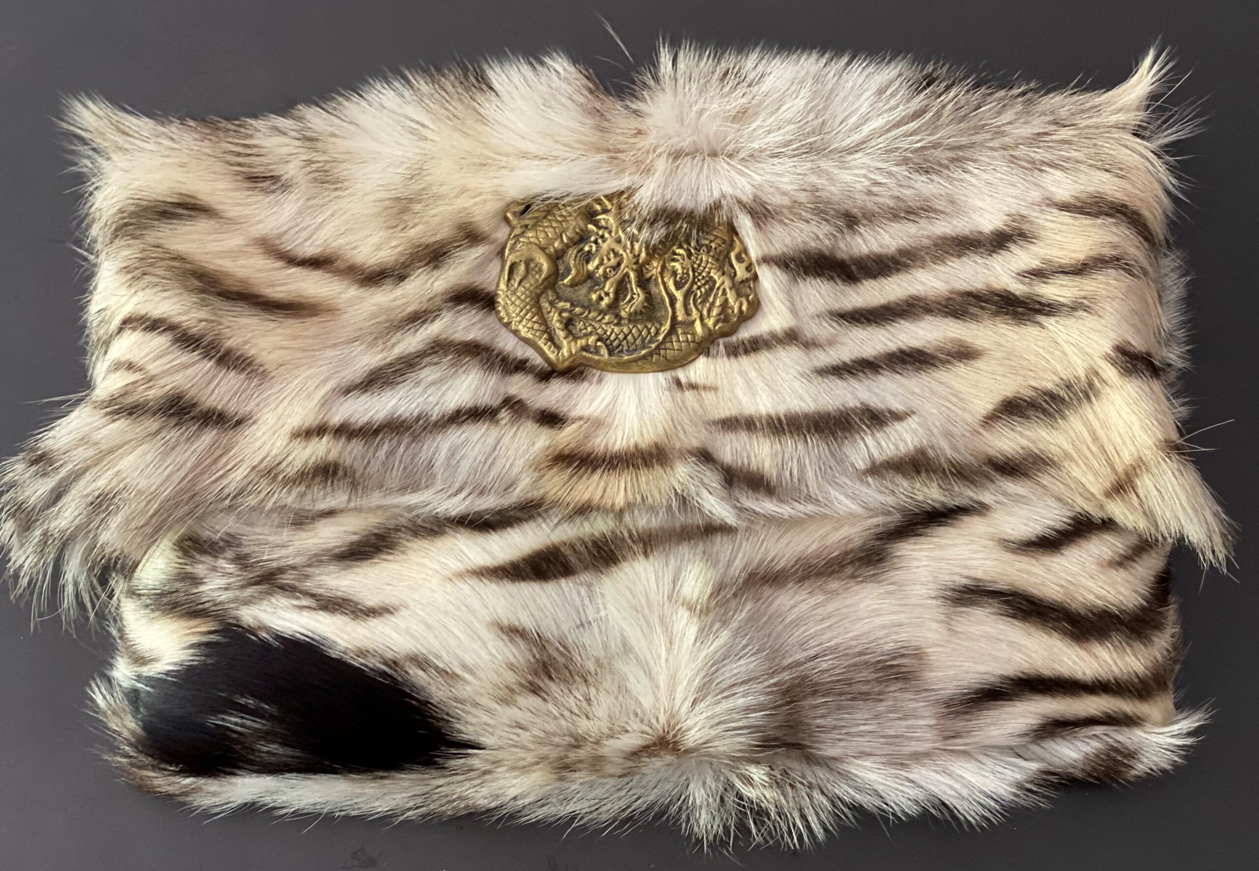 Eden will be the envy of all your friends. Handcrafted from goat hide and finished with animal print, she folds over with 6 hidden magnets to hold her into place.  Featuring a dragon motif on the front, suede lining with 2 internal pockets.  Space for you to carry your essentials, lippy, phone, wallet.  This stunning piece is a must have to compliment any outfit, a night out won’t be complete without it.  Each hide is handpicked and forever unique!