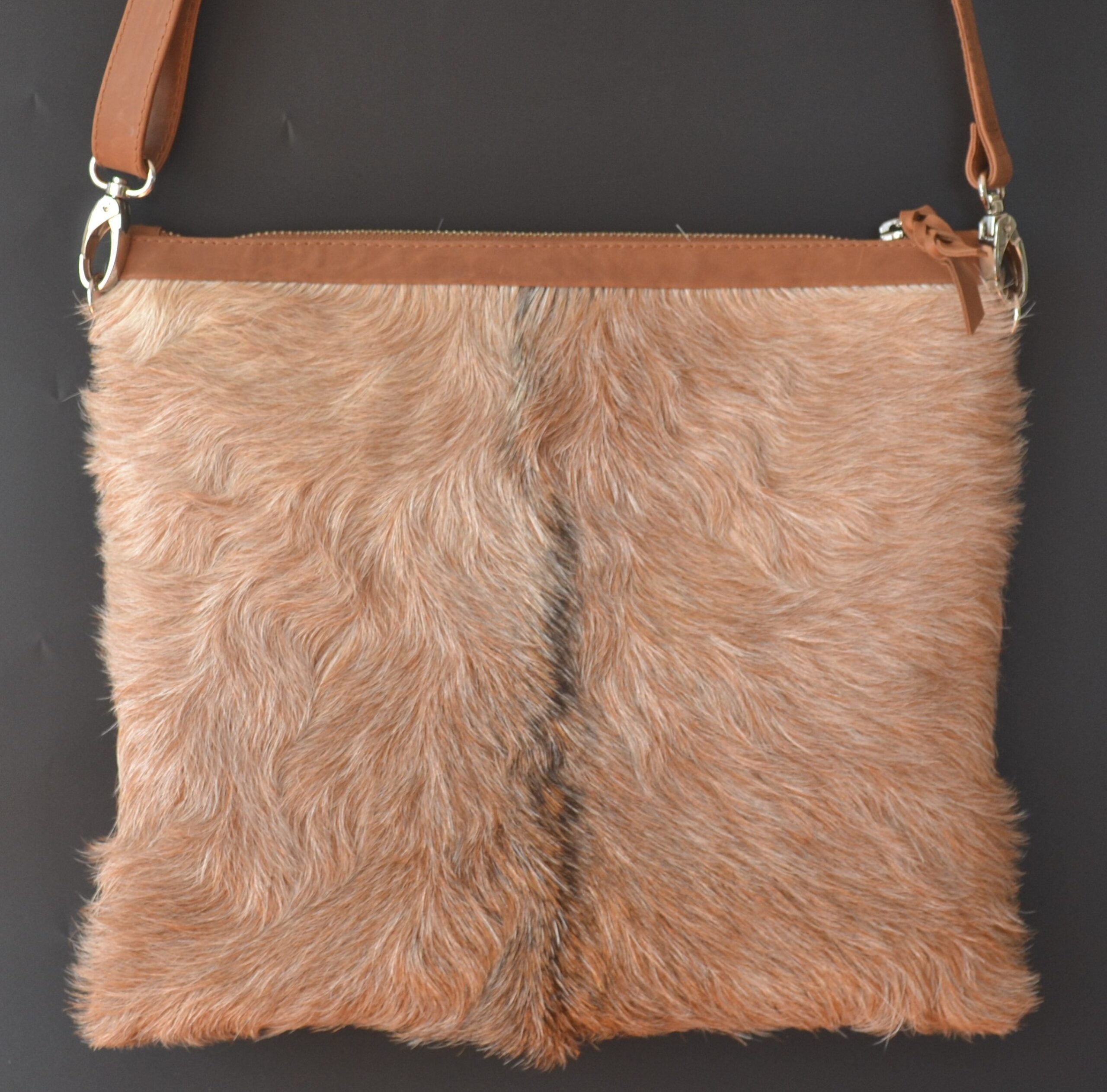 The Eumundi is simple yet sophisticated with hide on both sides of bag. Worn easily cross body with adjustable/detachable shoulder strap, perfect for everyday use for women on the go. Featuring internal zip pocket and 2 additional easy access pockets for mobile phone, keys and accessories.  Each hide is handpicked and one of a kind, forever unique!