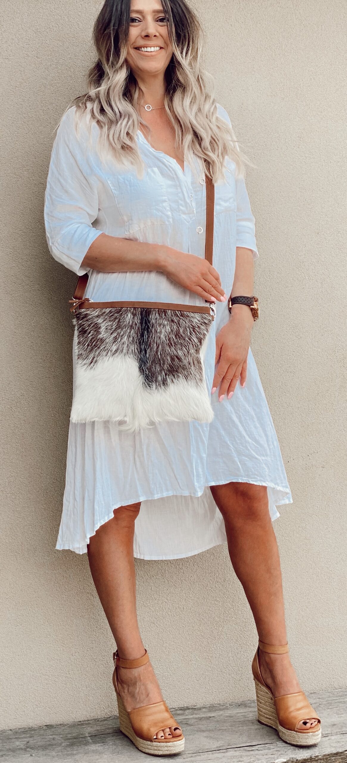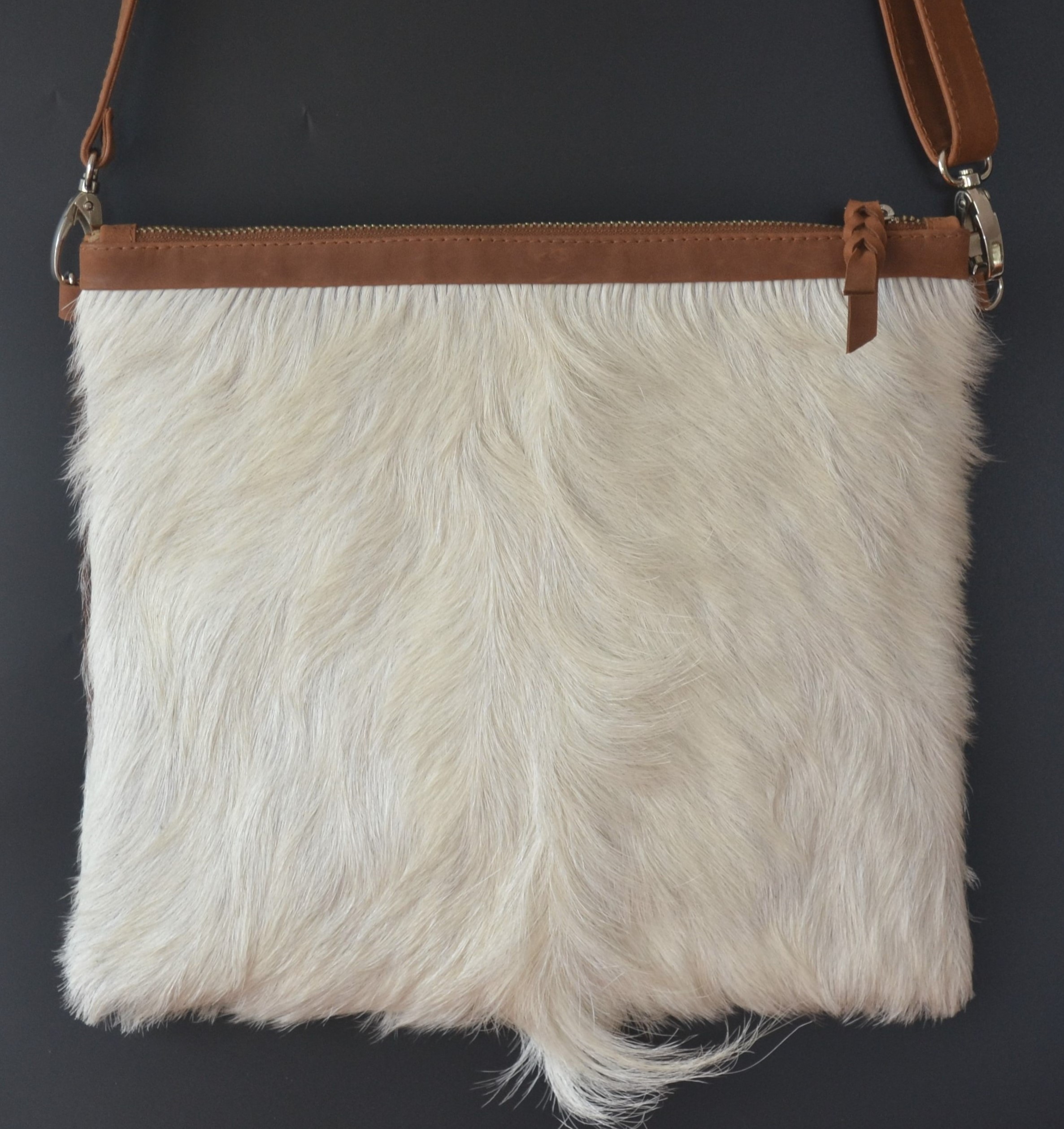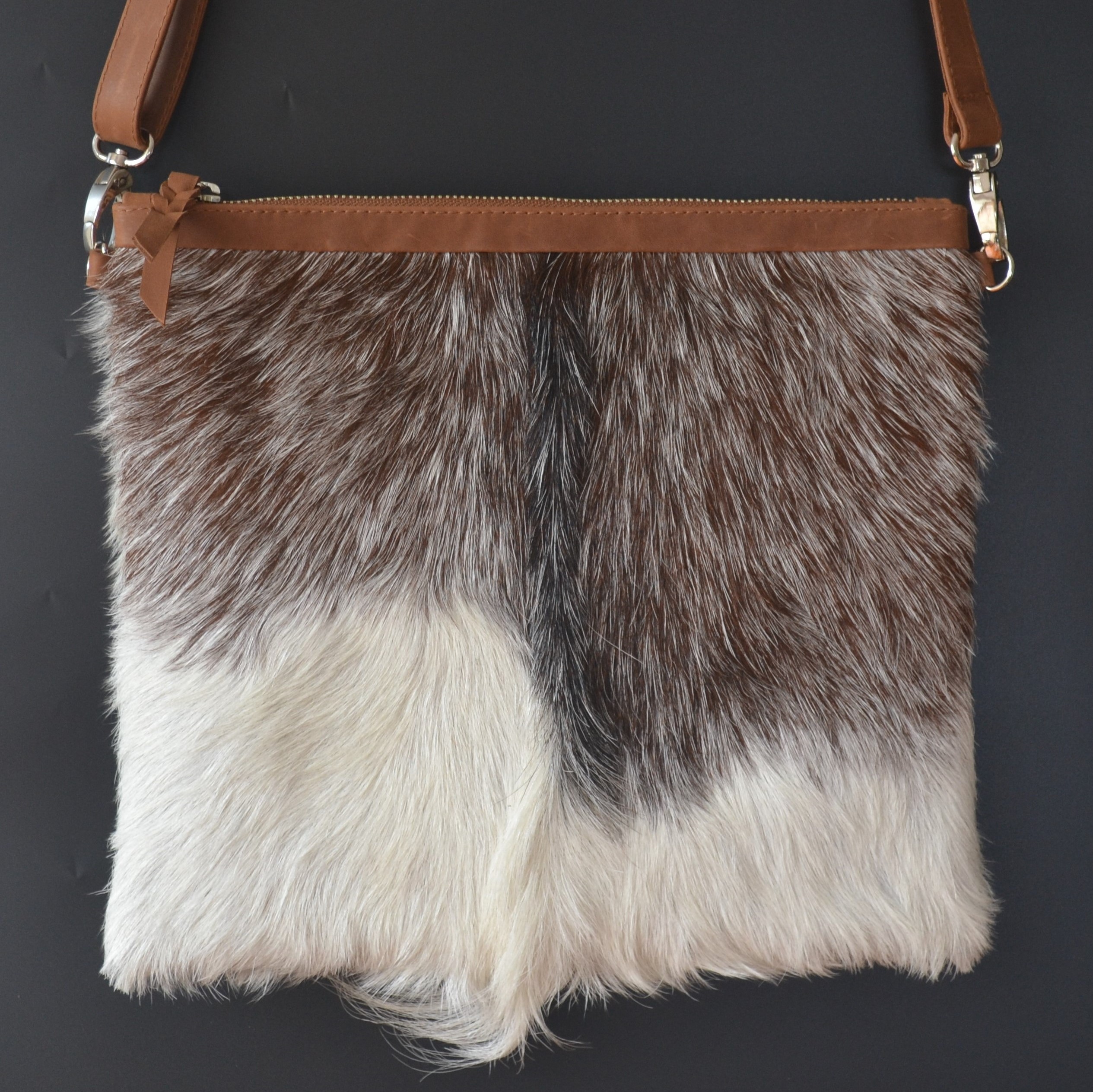 The Eumundi is simple yet sophisticated with hide on both sides of bag. Worn easily cross body with adjustable/detachable shoulder strap, perfect for everyday use for women on the go. Featuring internal zip pocket and 2 additional easy access pockets for mobile phone, keys and accessories.  Each hide is handpicked and one of a kind, forever unique!