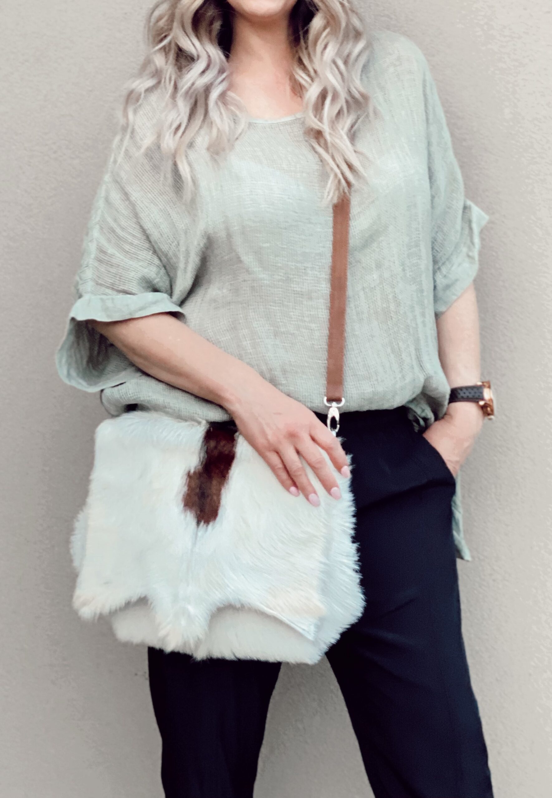 The Kakadu is a beautiful statement piece that is perfect for everyday use from casual lunches to into the evening. Wear it across body or over shoulder with leather adjustable/detachable strap. Featuring internal zip pocket with 2 additional easy access pockets for mobile phone, keys and accessories.  Each hide is handpicked and one of a kind, forever unique!