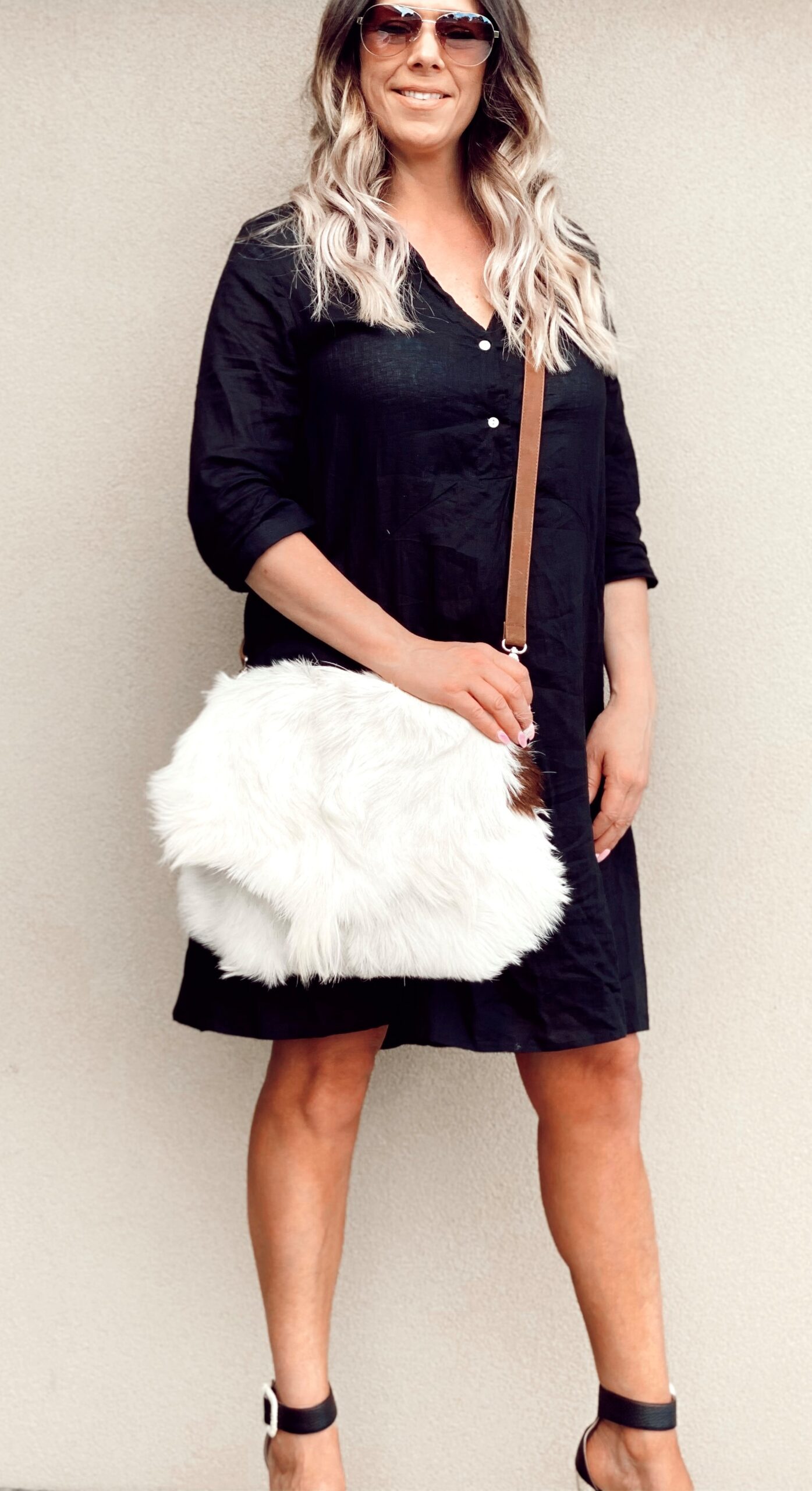 The Kakadu is a beautiful statement piece that is perfect for everyday use from casual lunches to into the evening. Wear it across body or over shoulder with leather adjustable/detachable strap. Featuring internal zip pocket with 2 additional easy access pockets for mobile phone, keys and accessories.  Each hide is handpicked and one of a kind, forever unique!