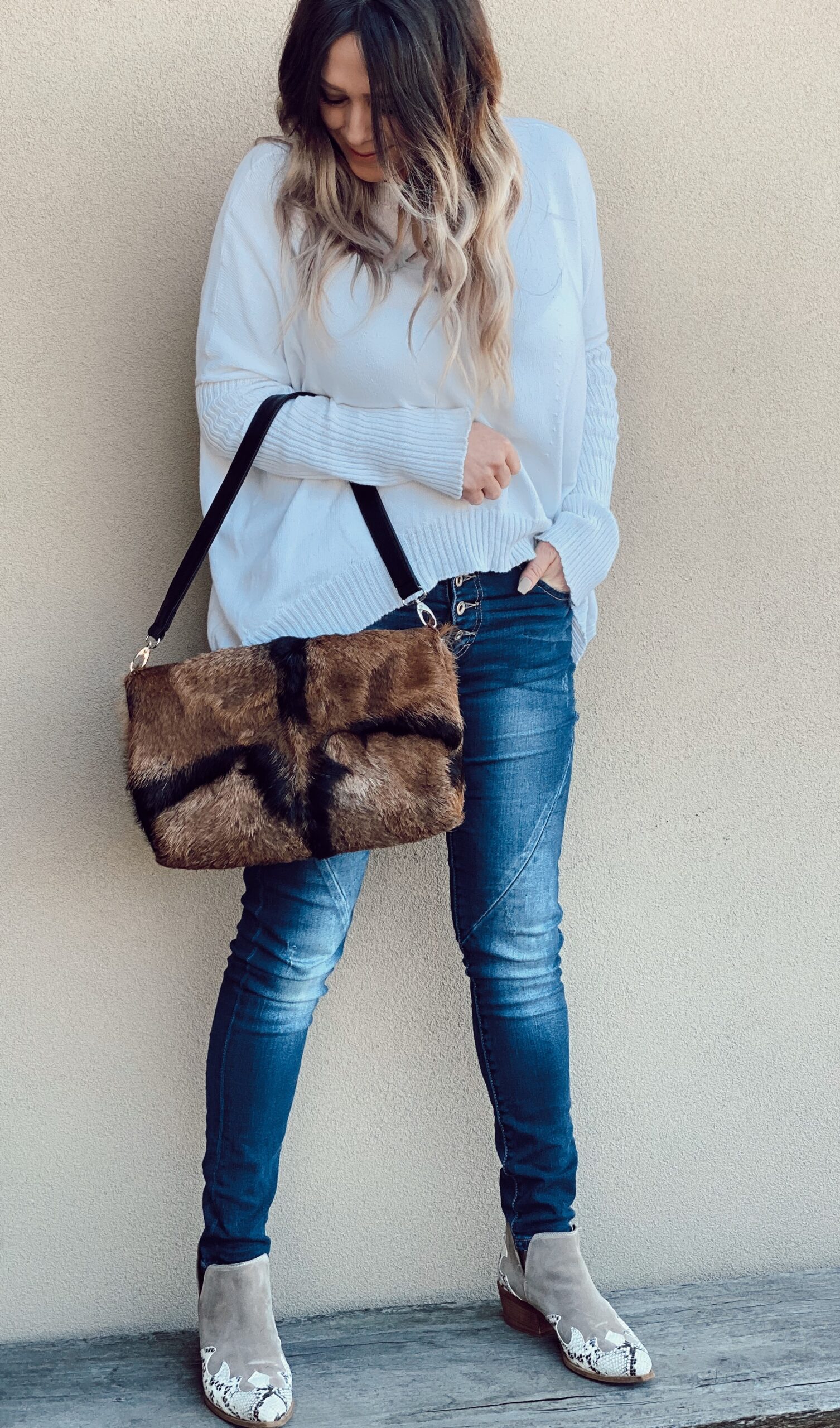 The Portsea bag will be the envy of your friends. Each bag is so amazing as one hide is totally wrapped around giving a stunning one of kind look. This fashion statement bag has unlimited style options from a casual lunch to dancing into the night. This babe features internal zip pocket with 2 additional pockets for mobile phone, keys and accessories. Each hide is handpicked and one of a kind, forever unique!