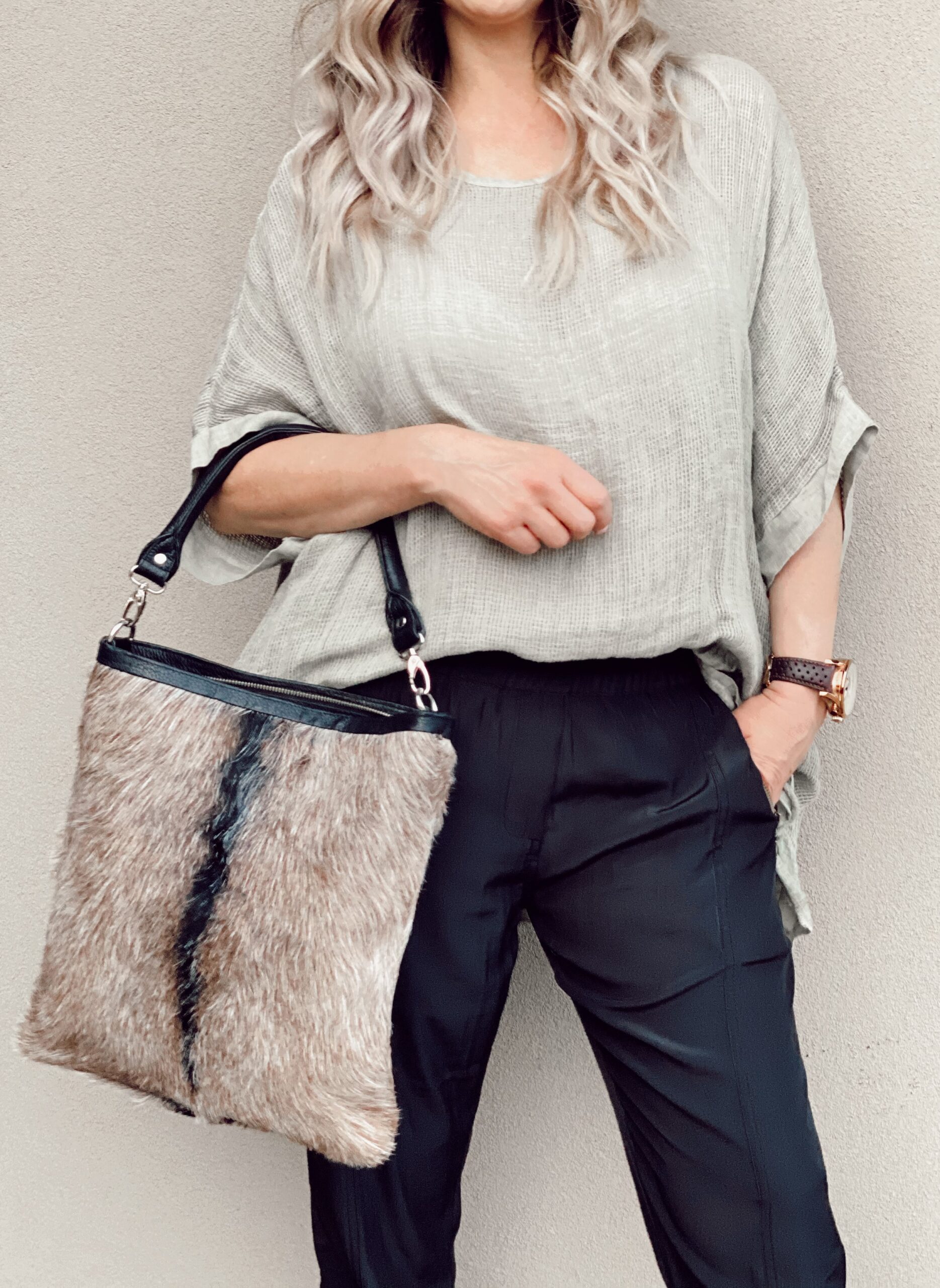 The Uluru handbag is a classic all-rounder! Perfect for everyday use, can be carried Audrey Hepburn style, off the arm with classic lines and delicious simplicity or on the shoulder with detachable strap for days on the run too! This bag features a top zipper closure, internal zip pocket with 2 additional easy access pockets for mobile phone, keys and accessories. Each hide is handpicked and one of a kind, forever unique!